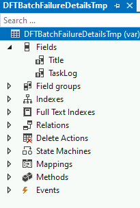 • Add a string-type field named Message using the new EDT DFTIntegrationStatusMessage.